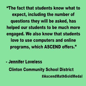 The fact that students know what to expect, including the number of questions they will be asked, has helped our students to be  much more engaged. We also know that students love to use computers and online programs, which ASCEND offers. Clinton Community School District_Quote