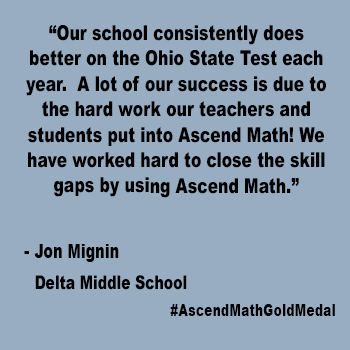 Our school consistently does better on the Ohio State Test each year.  A lot of our success is due to the hard work our teachers and students put into Ascend Math! We have worked hard to close the skill gaps by using Ascend Math.  Delta Middle School