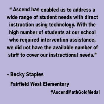 Ascend has enabled us to address a wide range of student needs with direct instruction using technology. With the high number of students at our school who required intervention assistance, we did not have the available number of staff to cover our instructional needs.