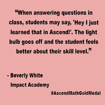 Impact Academy uses Ascend Math as an intervention tool where students can close gaps in their learning by 1 or more grade levels with 20 hours or more spent on the program. Ascend has assisted in student engagement by building confidence in the students. The students see an end goal by improving their math skills to earn a higher wage to support themselves.