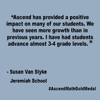 Jeremiah School - Ascend has provided a positive impact on many of our students. We have seen more growth than in previous years. I have had students advance almost 3-4 grade levels.