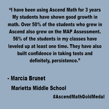 I have been using Ascend Math for 3 years  My students have shown good growth in math. Over 50% of the students who grew in Ascend also grew on the MAP Assessment. 56% of the students in my classes have leveled up at least one time. They have also built confidence in taking tests and definitely, persistence.