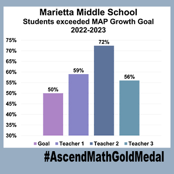 The 2022-2023 school year has been an amazing year for our partner schools. Our schools have reported growth on high stakes tests, exceeding their projected growth targets. We are so thankful for our Gold Medal schools, what they are doing to support their students, and the ways they have shared their learning models to help other educators implement best practices. The over 3500 students in our 32 Gold Medal schools had an average post test gain of 52.8% this year and completed over 100,000 objectives! Most students gained from 1 to 3 levels in Ascend Math! Each Gold Medal school implements Ascend Math in their own unique way, and yet all schools achieved great success in fulfilling their bold goals. A number of teachers shared how students’ confidence and motivation are elevated with the individualized learning provided in Ascend. Continue reading to find out what success looks like to our Gold Medal schools.