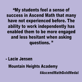 My students feel a sense of success in Ascend Math that many have not experienced before. The ability to work independently has enabled them to be more engaged and less hesitant when asking questions.