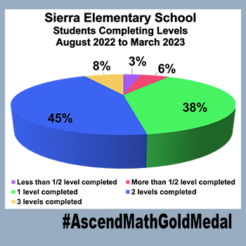 Sierra Elementary has found the impact on student achievement has been extremely powerful; for instance, each student is provided with an opportunity to think and act upon his goals and objectives based on the current math level. Therefore, Ascend Math recognizes the "individuality" of each learner, thus, it is differentiated in action. **Students have an average of 107 Objectives completed and 1.8 levels of growth!