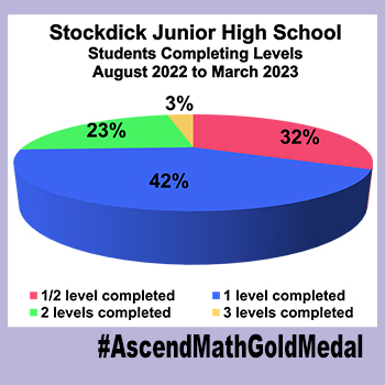 Stockdick Junior High implemented Ascend Math to assist with improved state assessment results and has experienced amazing growth. 33% of students have completed two grade levels, with 92% of students completing one grade level.