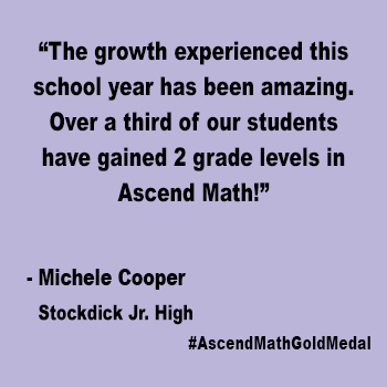 The growth experienced this school year has been amazing.   Over a third of our students have gained 2 grade levels in Ascend Math! Michele Cooper