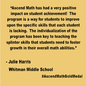 Whitman students utilize Ascend math for RTI and have seen significant growth from their over 90 minutes of usage per week. This has then translated into better grades and understanding in their regular math classes. This feeling of success tends to lead to improved confidence and student engagement. Students are more willing to do tasks that they know they are capable of doing!