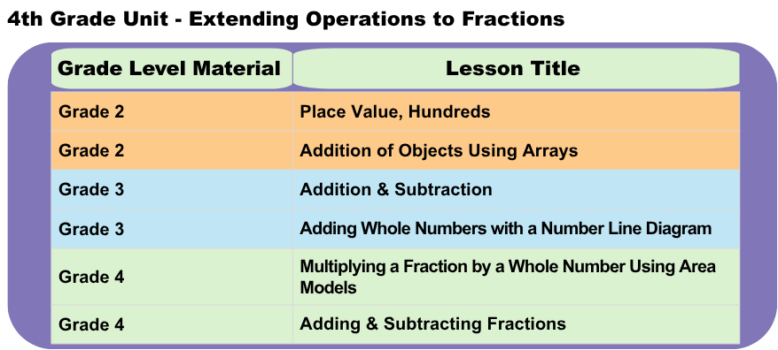 Ascend Math aligns with state standards and allows teachers to assign “Just in Time” lessons connected directly to Tier I classroom instruction. This feature addresses unfinished learning while reinforcing the grade-level concept being taught, ensuring interventions are supplemental and aligned to the core curriculum. In the example below 4th grade students are working on a Unit Extending Operations to Fractions.  The Intervention pathway will assess students’ knowledge of foundational skills for this unit.