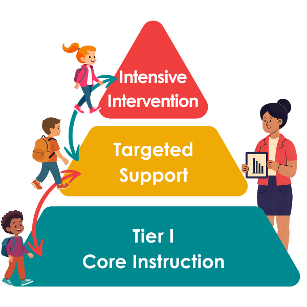 Includes a multi-tiered system of support (MTSS) that progresses from less to more intensive support based on the student's individual needs.