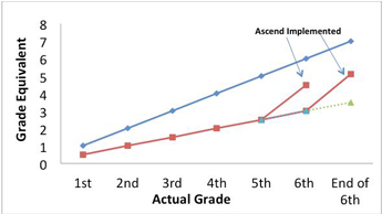 Objective: Ascend is used to move students who were working below grade level up to and beyond grade level. Students enrolling in the private school come from a wide diversity of demographics and abilities, especially in math.